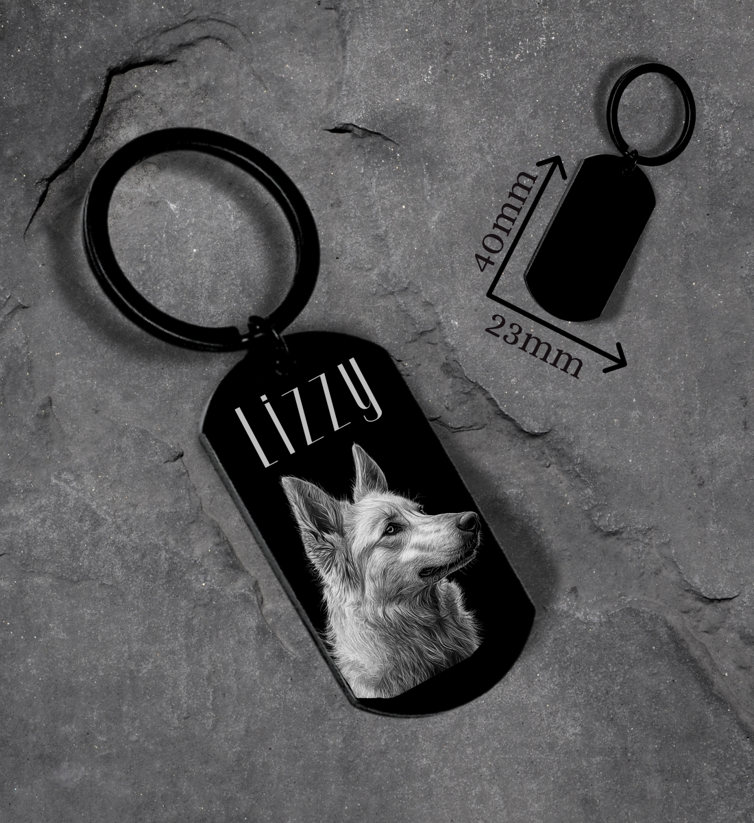 Mit unserem personalisierten Schlüsselanhänger kannst du dein Lieblingsfoto für immer bei dir tragen. Wir verwandeln dein Foto in eine detailreiche Gravur auf hochwertigem schwarzem Edelstahl – präzise, langlebig und einzigartig.